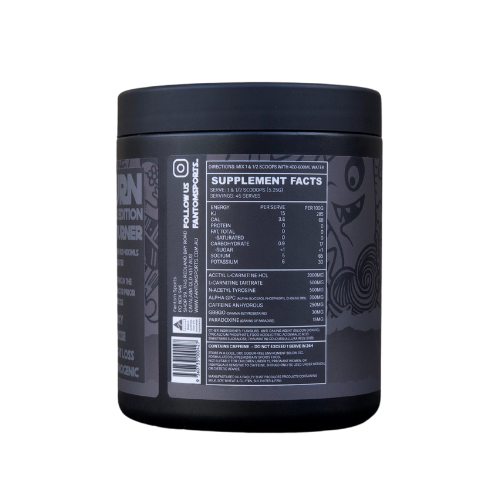 Fantom Burn will provide a nice boost energy before training/exercise or throughout the day as a “pick me up”. Start with 1 scoop and increase to 2 scoops if you feel like you need a bit of extra energy!