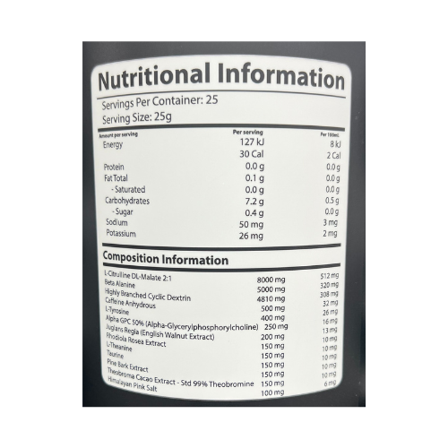- Beta Alanine at 5500mg pre serve