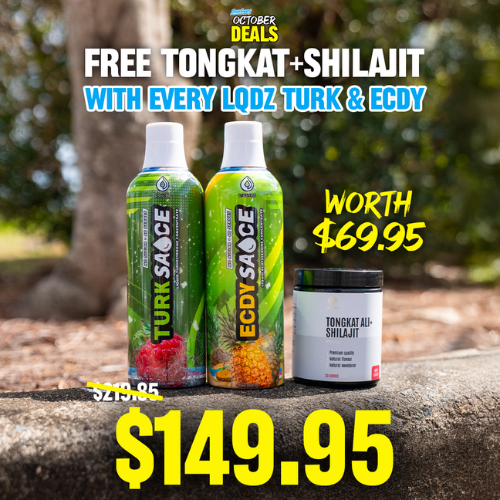 Purchase the LQDZ Turk Sauce & Ecdy Sauce stack to receive a FREE 30 serve ATP Science Tongkat & Shilajit worth $69.95!