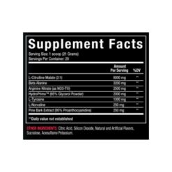 Merica Labz Fn Pumped contains L. Citrulline, Beta Alanine, Arginine Nitrate and L. tyrosine.