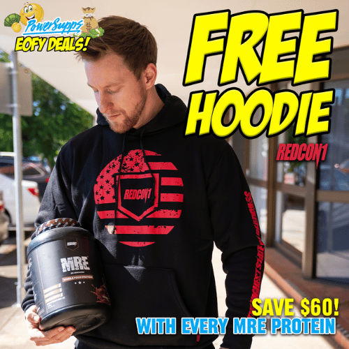 The timing could not get any better for a deal like this! With any flavour of the Redcon1 MRE, you will score a FREE Redcon1 Hoodie worth $60!!