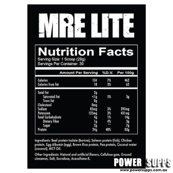 MRE Lite is a whole food source protein powder that consist of 24g of protein and only 130 calories. MRE Lite does not contain any lactose making it an easy digesting protein powder that can be used in a shake or any baking or cooking of your choice. With the ingredients consisting of whole food sources, it is densely packed with a superior macronutrient, micronutrient and amino acid profile that replicates having a healthy balanced meal. but also comes in 9 delicious and unique flavours. Now available in 9 delicious and unique flavours such as banana nut bread, waffles and syrup or strawberry shortcake.