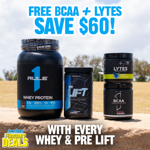The Rule 1 deals gives you protein, pre workout, BCAA’s and Electrolytes as an ALL-IN-ONE stack! What makes this stack even better? All the products are Rule 1 so there is no question on quality, taste and texture.